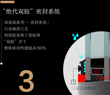 玻璃的室外和室内侧各两道密封,窗框结合部分采用3种材质(EPDM+海绵发泡+玻璃纤维)的汽车级复合胶条,中间部分采用2种材质(EPDM+海绵发泡)的复合材质,使窗户具备了更强的密封性能。