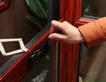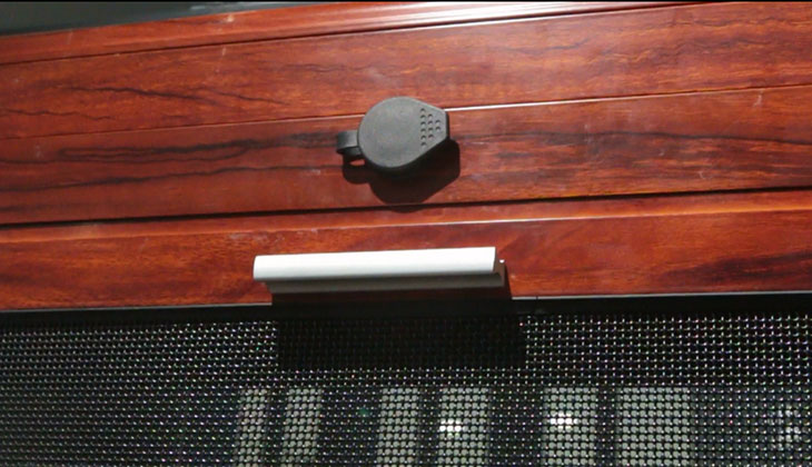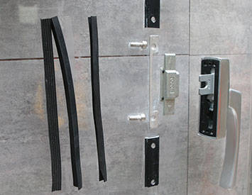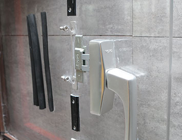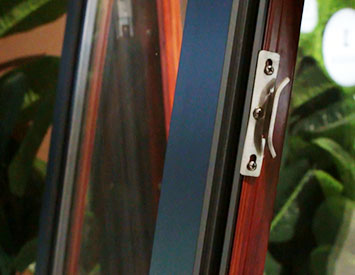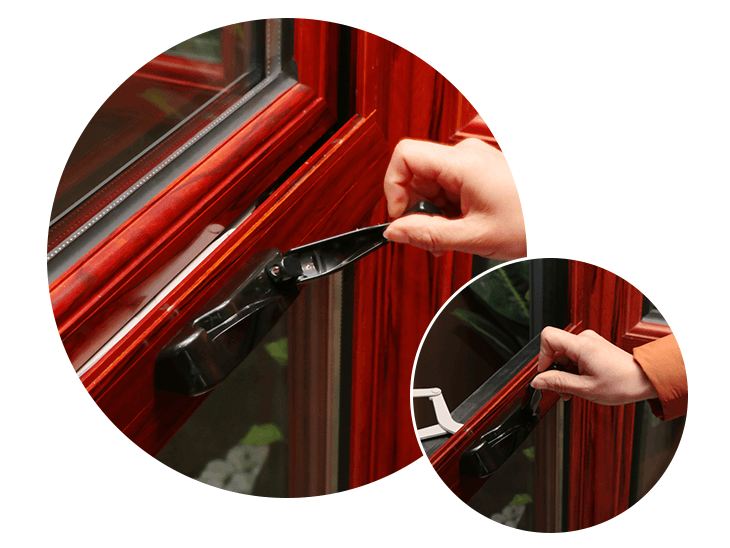 扇叶与窗框间有三道密封胶,紧密贴合在一起,使窗子具有隔音隔热性能。为了加强紧密贴合的作用,该款门窗上还安装了一个双保险锁对窗扇进行锁闭。