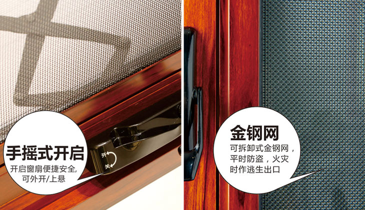 窗纱一体;金刚网可便捷拆卸 进口手摇五金件;隔纱网手摇开窗 双保险锁,节能静音