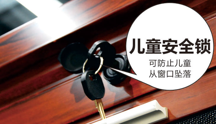 儿童安全锁的设计,有效防止儿童坠落。该款窗户还可搭载智能安全防盗报警装置,保证更好的防盗效果。