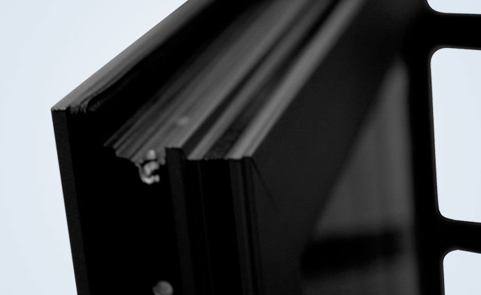室外型材为氟碳灰颜色,表面采用“三涂一烘”的处理工艺,抗腐蚀、抗紫外线、耐候性,长期使用不褪色;室内型材可选多色逼真亚光木纹,采用真空热转印技术,木纹分辨率高、附着力强、长期使用不褪色,对型材结构有保护作用。