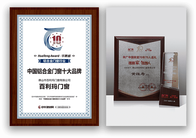 二十载风雨沉淀,百利玛门窗得到社会各界的广泛赞誉,从品牌到产品,从设计到技术,所获奖项不计其数,每一个荣誉都是 对百利玛门窗的最大肯定,也是消费者信任百利玛的最佳体现!